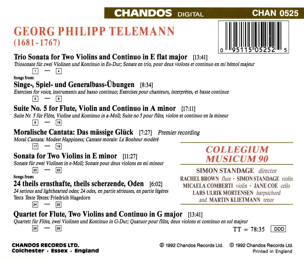 Brown, Rachel / Coe, Jane / Collegium Musicum 90 / Comberti, Micaela / Klietmann, Martin / Mortensen, Lars Ulrik / Standage, Simon