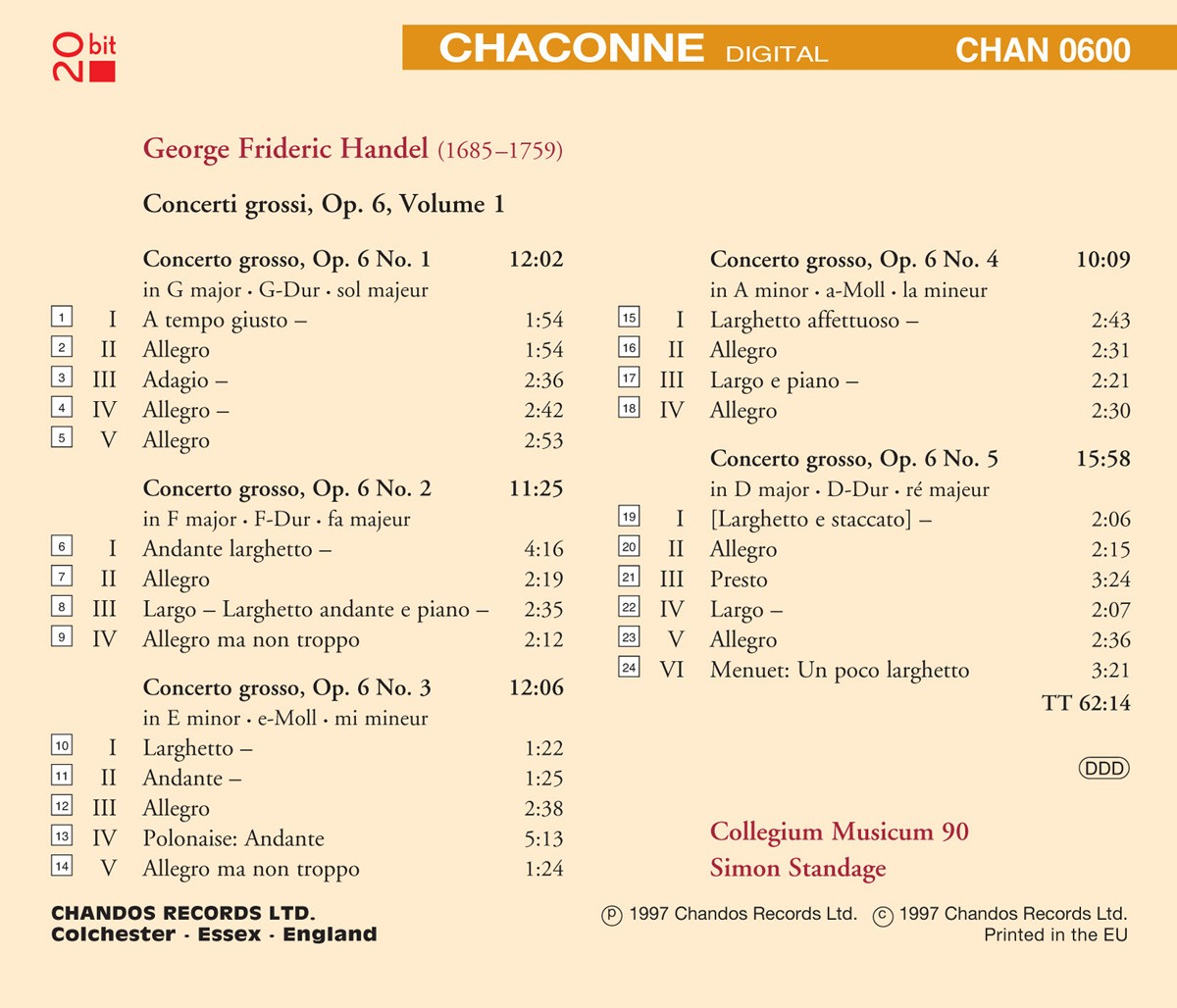 Concerti Grossi op.6, 1-5