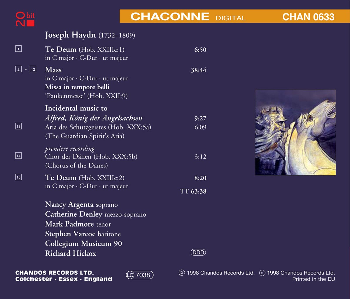 Argenta, Nancy / Collegium Musicum 90 / Collegium Musicum 90 Chorus / Denley, Catherine / Fox, Jacqueline / Hickox, Richard / Padmore, Mark / Varcoe, Stephen