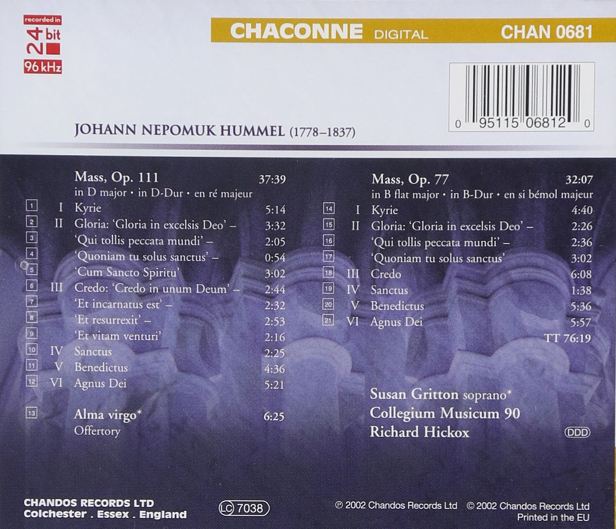 Chamber Choir / Collegium Musicum 90 / Gritton, Susan / Hickox, Richard