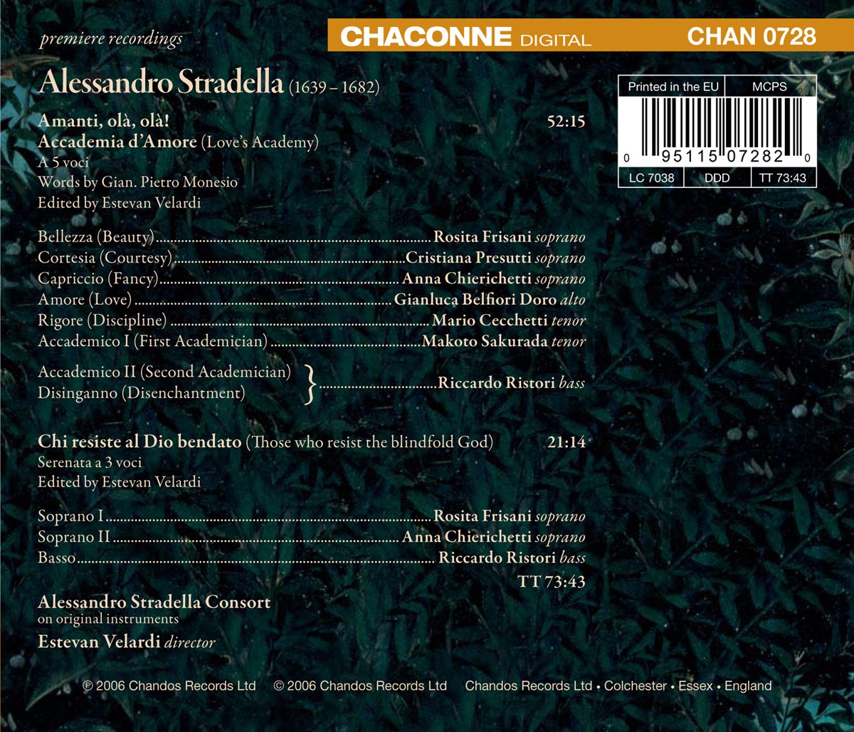 Alessandro Stradella Consort / Belfiori Doro, Gianluca / Cecchetti, Mario / Chierichetti, Anna / Frisani, Rosita / Presutti, Cristiana / Ristori, Riccardo / Sakurada, Makoto / Velardi, Estévan