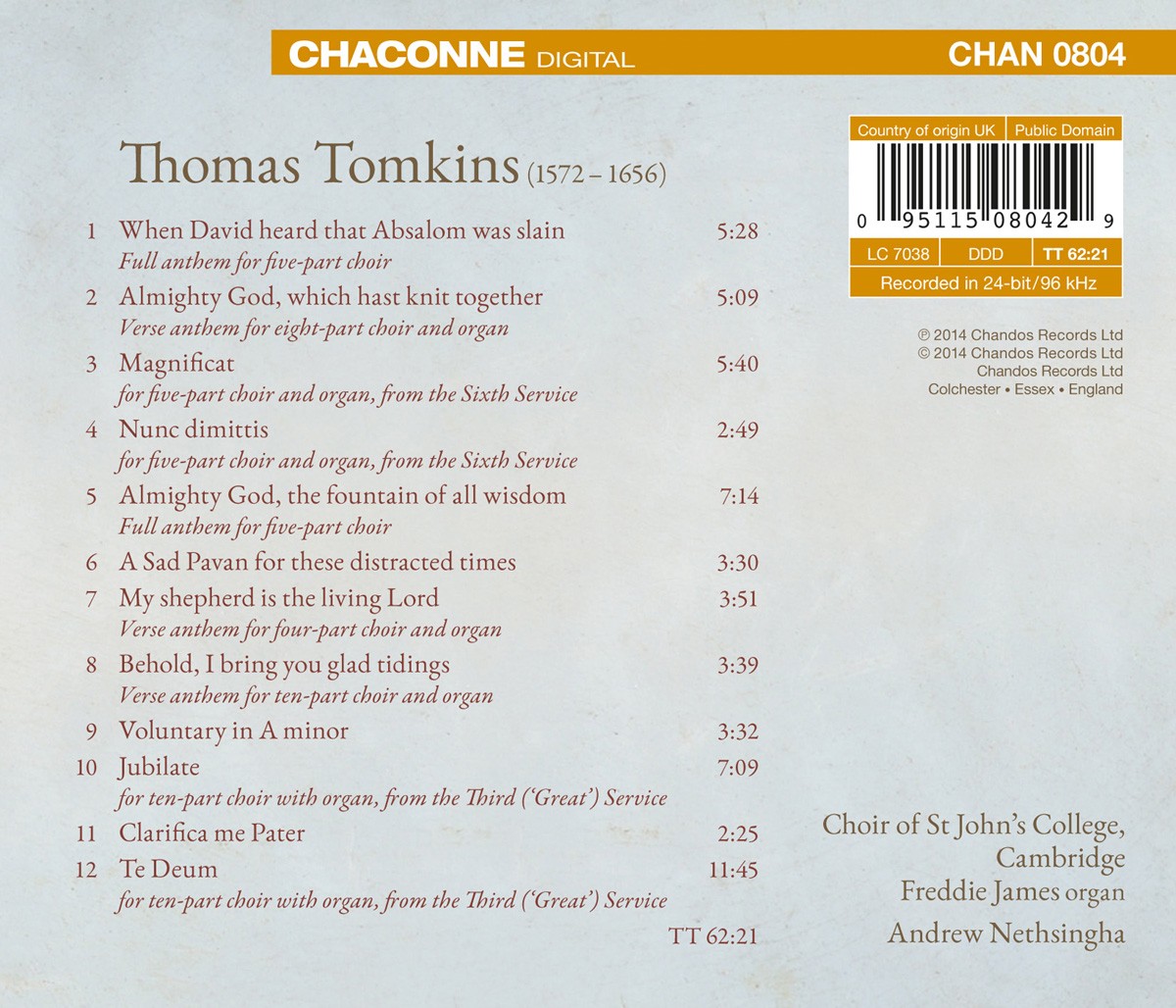 James, Freddie / Nethsingha, Andrew / St. John's College Choir, Cambridge