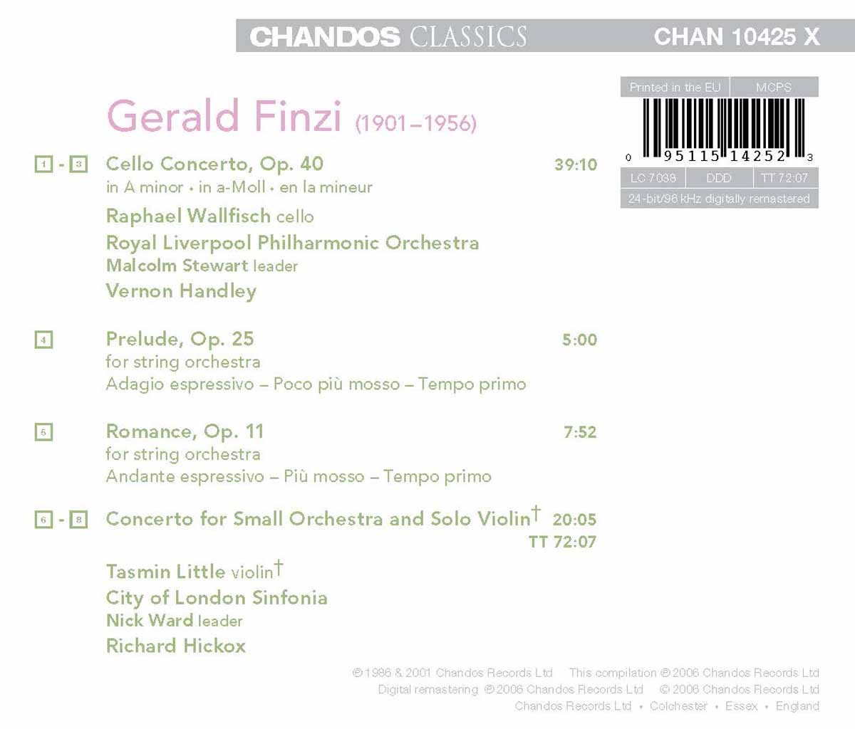 City of London Sinfonia / Handley, Vernon / Hickox, Richard / Little, Tasmin / Royal Liverpool Philharmonic Orchestra / Wallfisch, Raphael