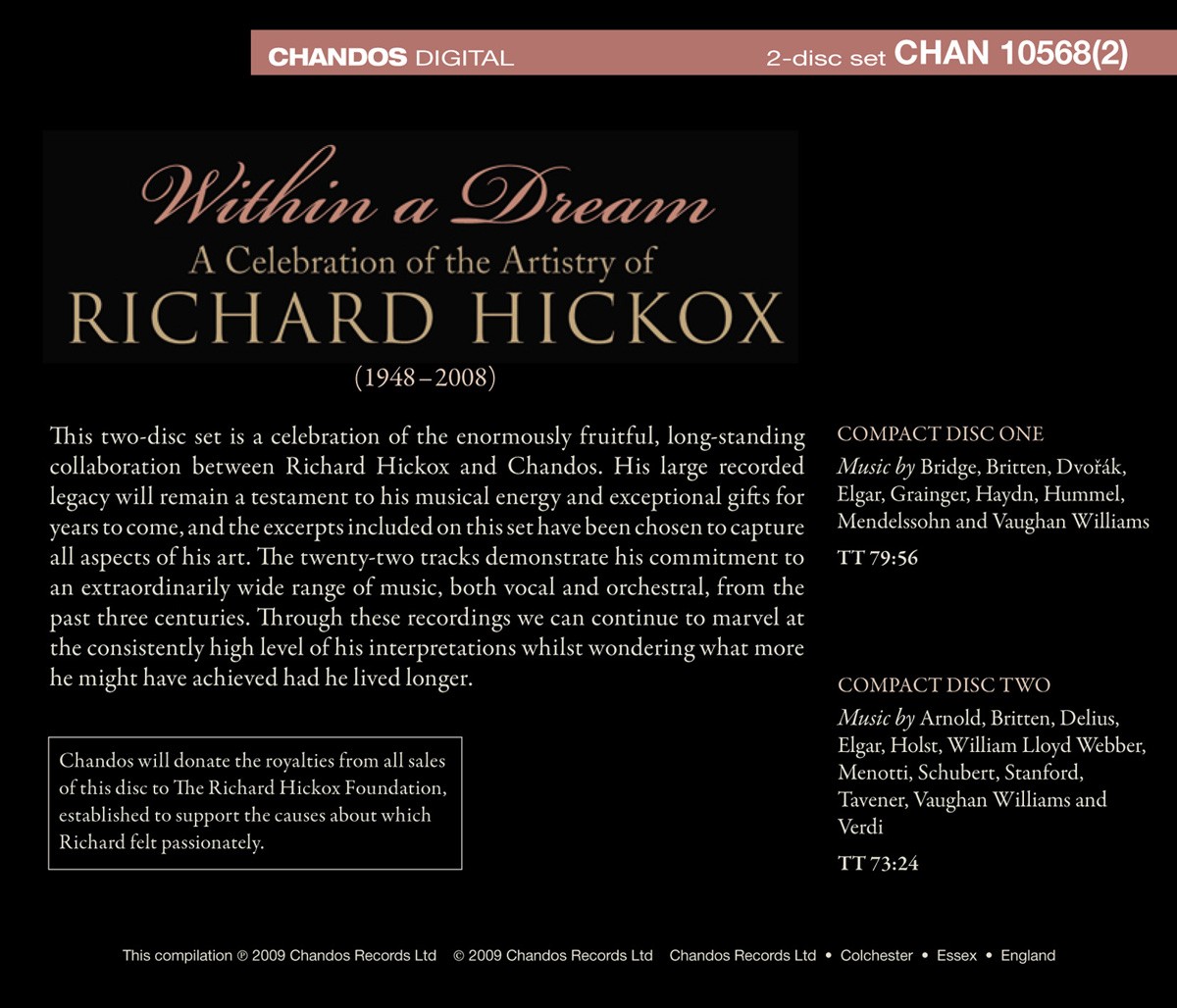 Ainsley, John Mark / Australian Opera and Ballet Orchestra / Barker, Cheryl / BBC National Chorus of Wales / BBC National Orchestra of Wales / BBC Welsh Chorus / BBC Welsh Symphony Orchestra / Bournemouth Symphony Chorus / Bournemouth Symphony Orchestra / Britten Singers / Bullock, Susan / Burgess, Sally / Chester Festival Chorus / City of London Sinfonia / Collegium Musicum 90 / Connock, Stephen / Davies, Arthur / Eckhoff, Herbert / Elms, Roderick / Finley, Gerald / Finnie, Linda / Fritz, Malin / Gilchrist, James / Gritton, Susan / Harper, Heather / Hickox, Richard / Kanga, Skaila / Langridge, Philip / Livengood, Victoria / London Chamber Orchestra / London Symphony Chorus / London Symphony Orchestra / Martin, Bruce / Owens, Anne-Marie / Padmore, Mark / Palmer, Felicity / Royal Opera House Orchestra, Covent Garden / Rozario, Patricia / Shirley-Quirk, John / Southern Voices / Spoleto Festival Orchestra / Stephen, Pamela Helen / St. Paul's Cathedral Choristers / Terfel, Bryn / Waynflete Singers / Williams, Roderick