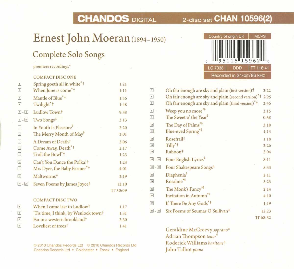 McGreevy, Geraldine / Talbot, John / Thompson, Adrian / Weybridge Male Voice Choir / Williams, Roderick