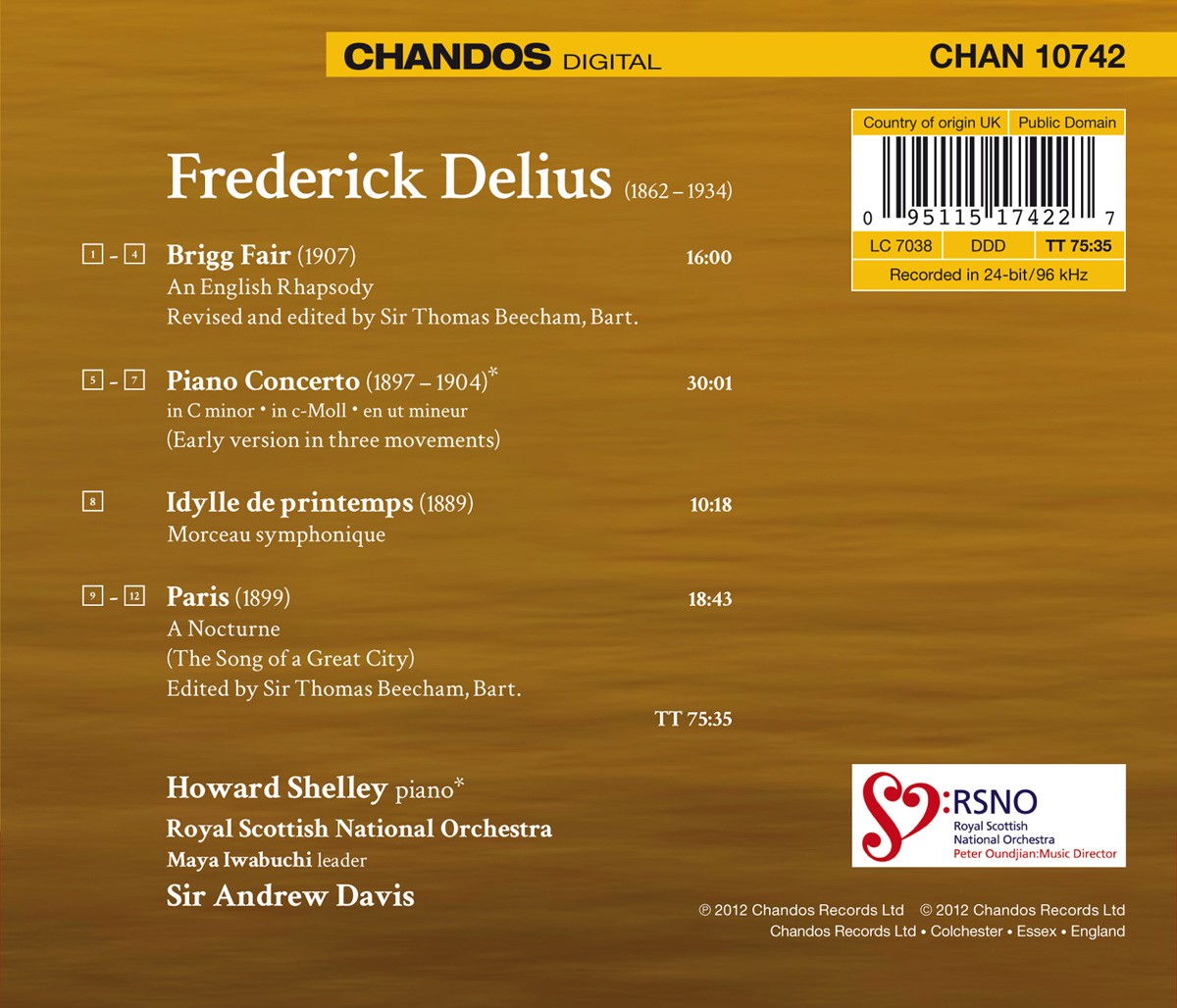 Davis, Andrew / Royal Scottish National Orchestra / Shelley, Howard