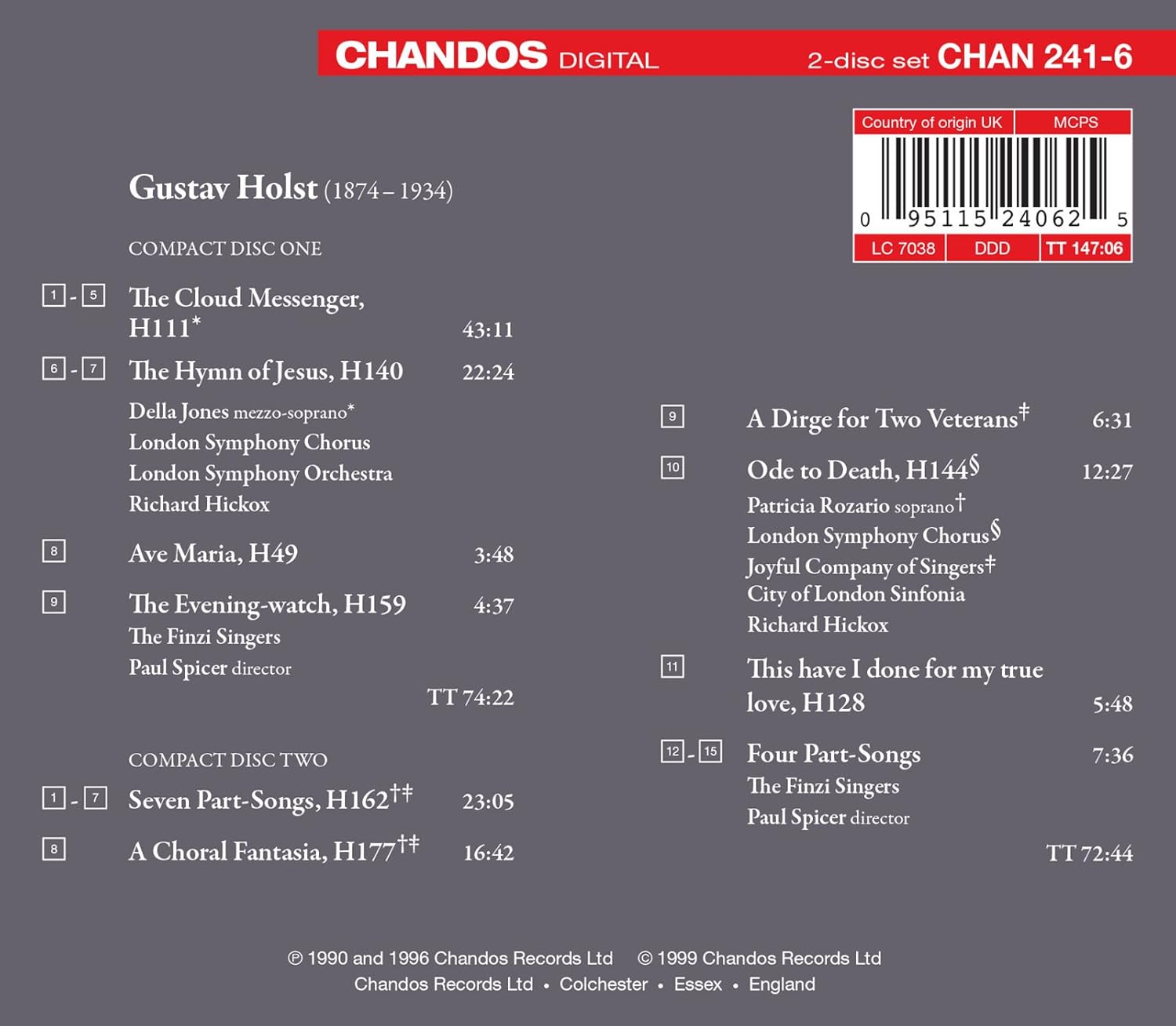 City of London Sinfonia / Finzi Singers / Hickox, Richard / Jones, Della / Joyful Company of Singers / London Symphony Chorus / London Symphony Orchestra / Milhofer, Mark / Rozario, Patricia / Spicer, Paul / Spicer, Susanna / Wheatley, Rachel