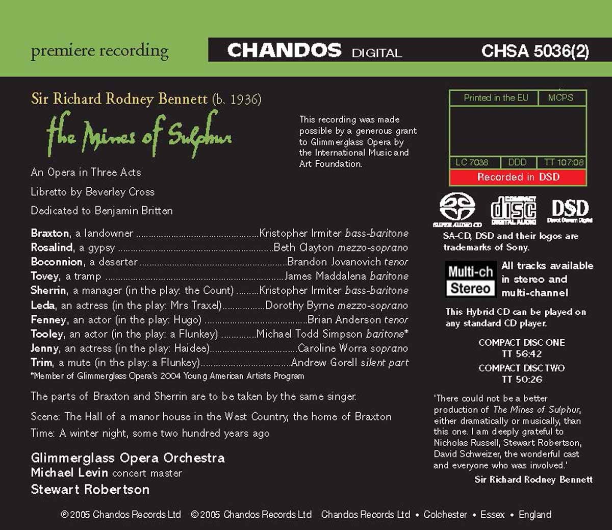 Anderson, Brian / Byrne, Dorothy / Clayton, Beth / Glimmerglass Opera Orchestra / Irmiter, Kristopher / Jovanovich, Brandon / Maddalena, James / Robertson, Stewart / Simpson, Michael Todd / Worra, Caroline