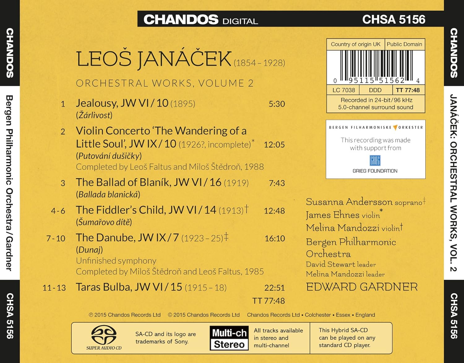 Andersson, Susanna / Bergen Philharmonic Orchestra / Ehnes, James / Gardner, Edward / Mandozzi, Melina
