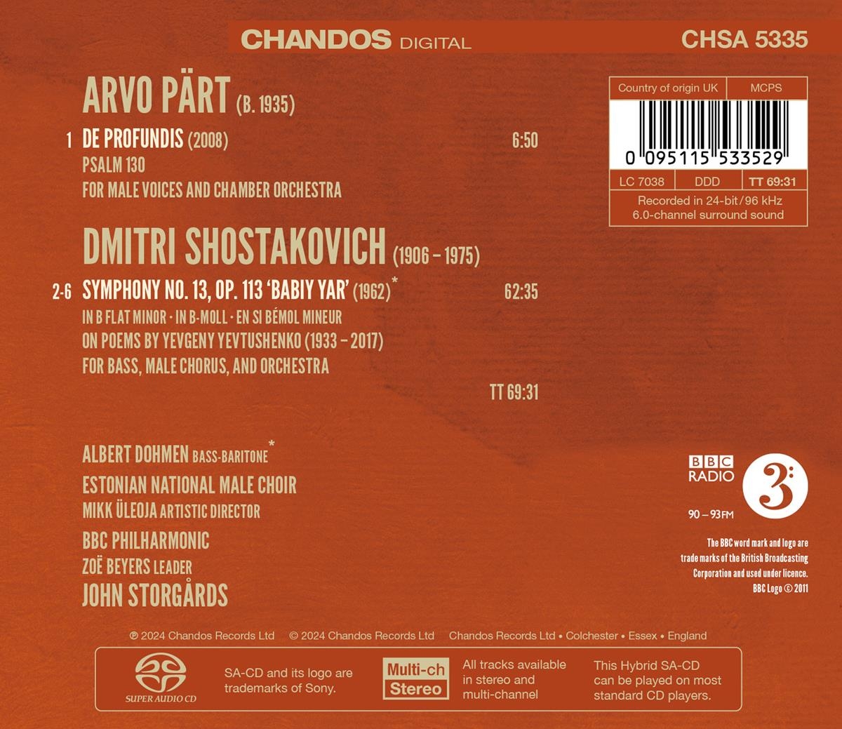 Schostakowitsch: Sinfonie Nr. 13 / Pärt: De Profundis