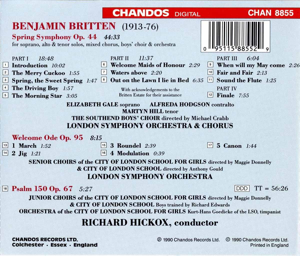 City of London School for Girls Junior Choir / City of London School for Girls Orchestra / City of London School for Girls Senior Choir / City of London School Junior Choir / City of London School Senior Choir / Gale, Elizabeth / Hickox, Richard / Hill, Martyn / Hodgson, Alfreda / London Symphony Chorus / London Symphony Orchestra / Southend Boys Choir