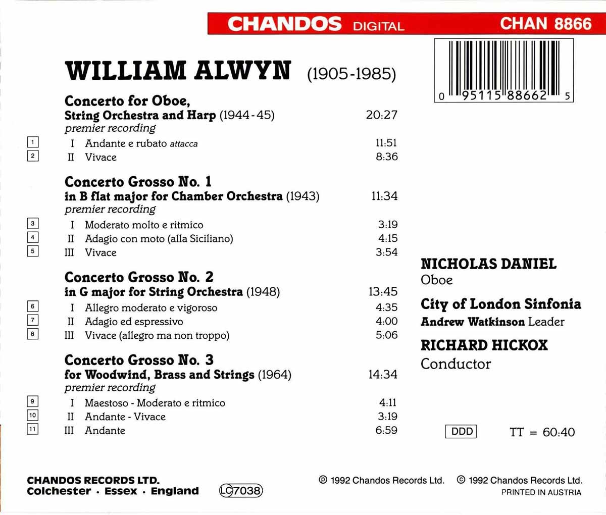 City of London Sinfonia / Daniel, Nicholas / Dobing, Duke / Dorey, Susan / Gladstone, Anthony / Hickox, Richard / Masters, Rachel / Matthews, Glyn / Railton, Peter / Roberts, Edward / Souter, Matthew / Steele-Perkins, Crispian / Watkinson, Andrew