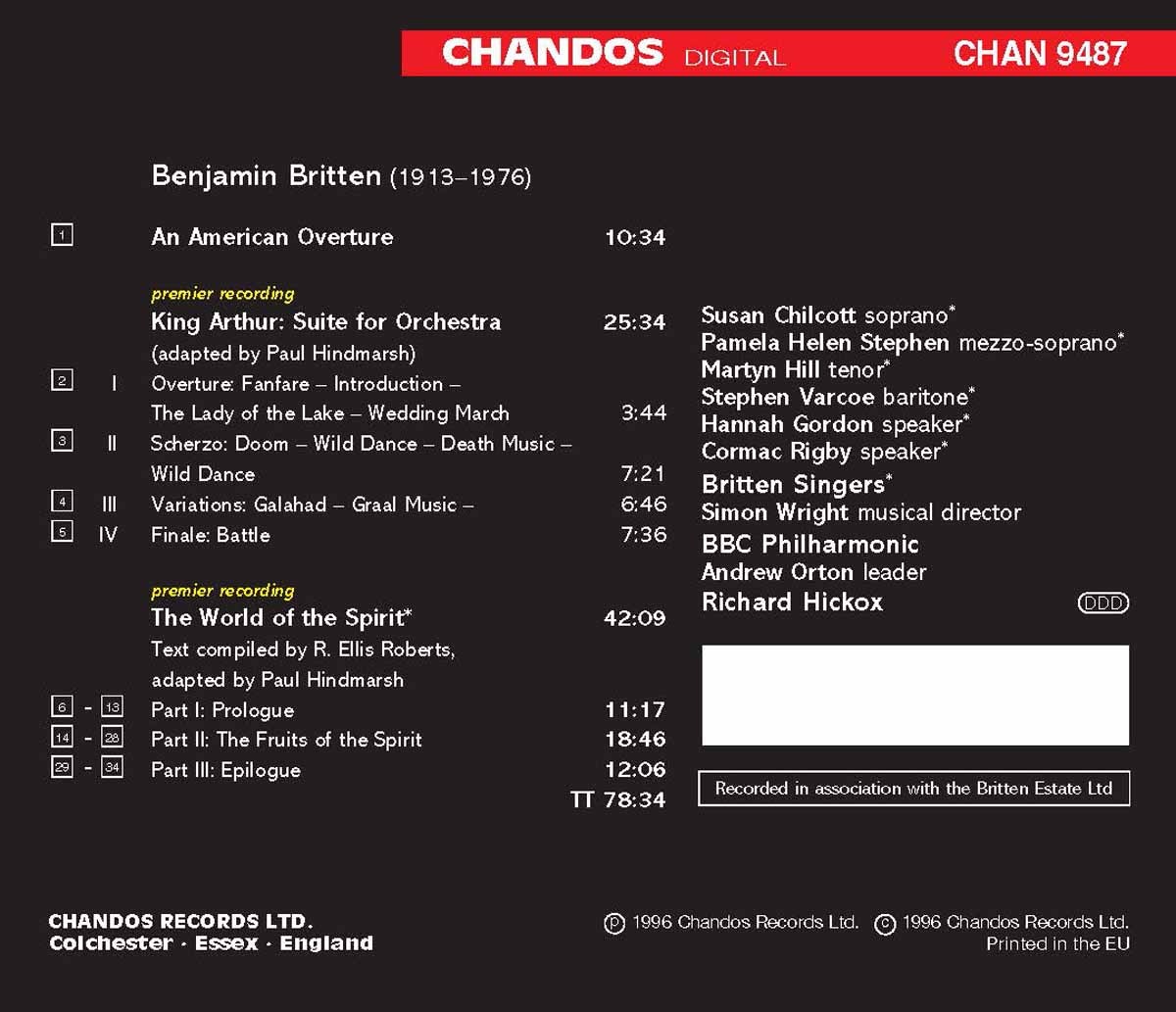 BBC Philharmonic Orchestra / Britten Singers / Chilcott, Susan / Gordon, Hannah / Hickox, Richard / Hill, Martyn / Rigby, Cormac / Stephen, Pamela Helen / Varcoe, Stephen