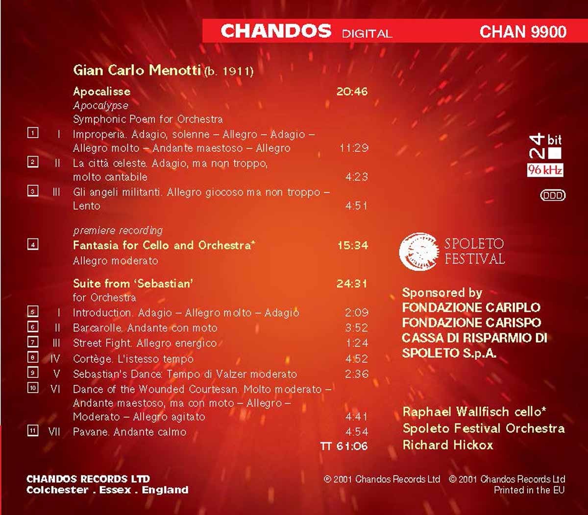 Hickox, Richard / Spoleto Festival Orchestra / Wallfisch, Raphael