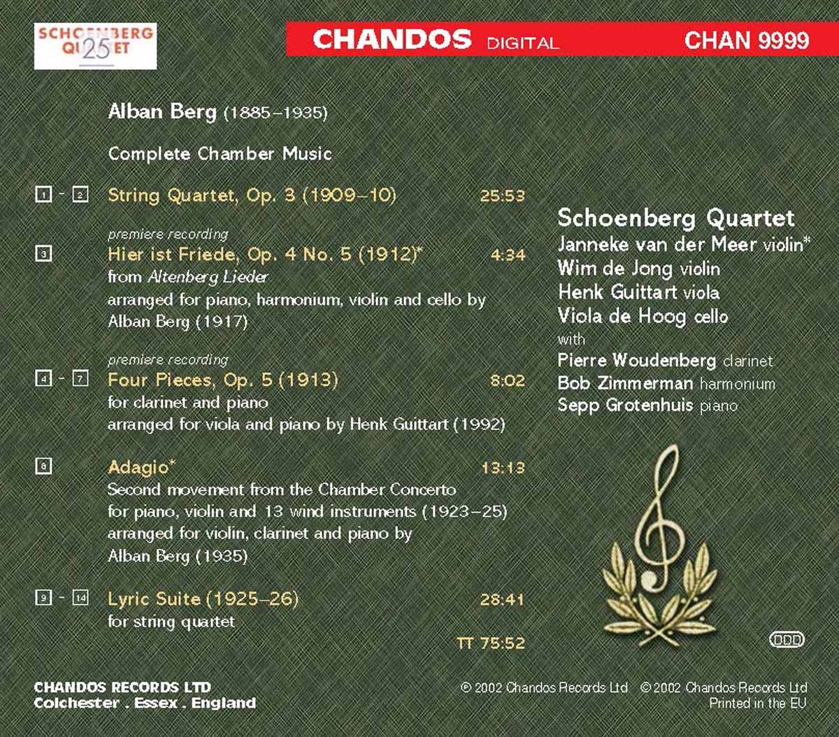 Grotenhuis, Sepp / Guittart, Henk / Hoog, Viola de / Meer, Janneke van der / Schoenberg Quartet / Woudenberg, Pierre / Zimmerman, Bob