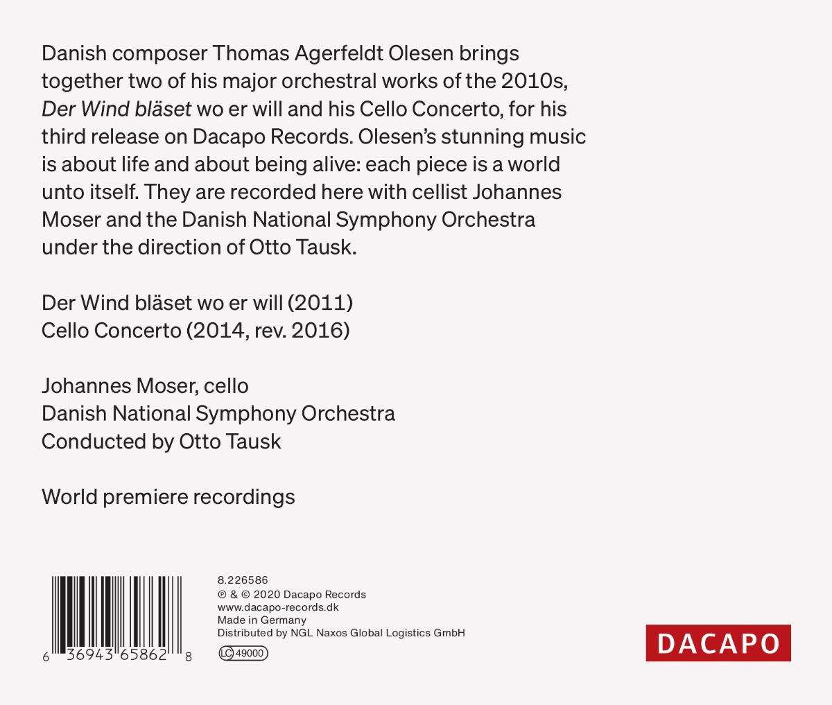 Dieses Album enthält Weltersteinspielungen von zwei Hauptwerken Olesens: das Orchesterwerk „Der Wind bläset wo er will“ (benannt nach einem Bibelzitat) und sein Cellokonzert. Solist des Letzteren ist der deutsch-kanadische Cellist Johannes Moser.