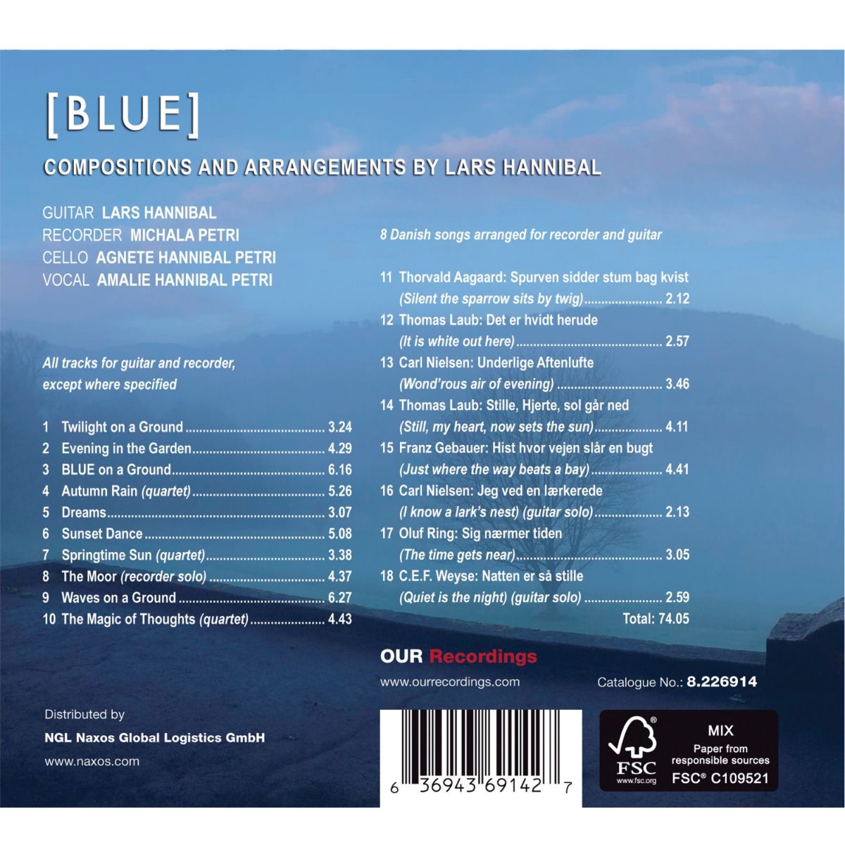 „Blue“ ist das erste Album mit Eigenkompositionen Hannibals. Es wird durch Volksliedbearbeitungen ergänzt. Gemeinsam mit seiner früheren Ehefrau und lebenslangen musikalischen Partnerin Michala Petri und seinen beiden Töchtern Agnete und Amalie legt Hannibal die Essenz seiner musikalischen Karriere in einem ungewöhnlich intimen, persönlichen Album vor, das seine herausragenden Fähigkeiten als Gitarrist und Komponist unterstreicht.
