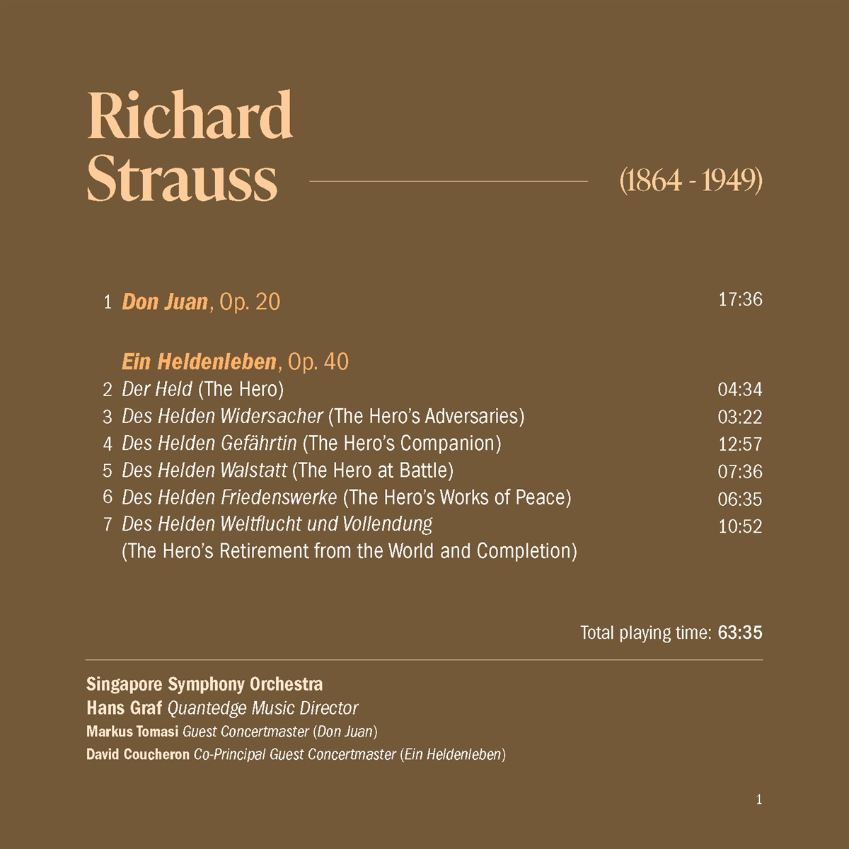 Die ‚Tondichtung‘ war von Mitte des 19. bis Anfang des 20. Jahrhunderts ein beliebtes europäisches Genre. Der Komponist Richard Strauss war ein Meister dieser Form und schuf zehn Werke. Eine Tondichtung ist ein einteiliges Orchesterstück, das Stimmungen, Geschichten oder Szenen hervorrufen soll, ohne einer strengen Erzählung zu folgen. Strauss' „Don Juan“, Op. 20 (1888), wurde von Nikolaus Lenaus poetischer Interpretation der Don-Juan-Legende inspiriert, in der er als Mann dargestellt wird, der nach der perfekten Frau sucht und schließlich der Verzweiflung verfällt. Strauss' Orchesterwerk spiegelt dies wider: Es beginnt mit energiegeladenen Themen zu Don Juans Abenteuern, enthält lyrische Passagen für seine Liebschaften und endet mit dunklen Akkorden, die seinen Untergang symbolisieren. 1898 komponierte Strauss „Ein Heldenleben“, eine sechsteilige Tondichtung, die von Beethovens „Eroica“ inspiriert war und sein eigenes Leben und seine Karriere widerspiegelte. Die Themen beschreiben den Helden, seine Gegner, seinen Gefährten, seine Kämpfe, den Frieden und seinen endgültigen Rückzug. Kritiker diskutierten, ob Strauss’ Selbstporträt arrogant oder humorvoll sei, aber das Werk bleibt ein Zeugnis künstlerischen Kampfes und Triumphs. Der österreichische Dirigent Hans Graf, seit 2020 Chefdirigent des Singapore Symphony Orchestra (SSO), ist bekannt für seine Neugier, seine kreative Programmgestaltung und seine beeindruckende Präsenz. Als weltweit gefeierter Gastdirigent hat er zahlreiche Preise gewonnen, darunter den Österreichischen Musiktheaterpreis, und Werke von Mozart, Strawinsky und Berg aufgenommen. Das 1979 gegründete SSO ist Singapurs Flaggschiff-Orchester, das das ganze Jahr über auftritt und weltweite Anerkennung genießt. Unter Graf hat das Orchester über 50 Aufnahmen veröffentlicht und seltene Werke von Komponisten wie Kozłowski, Klenau und Ogerman wiederbelebt.