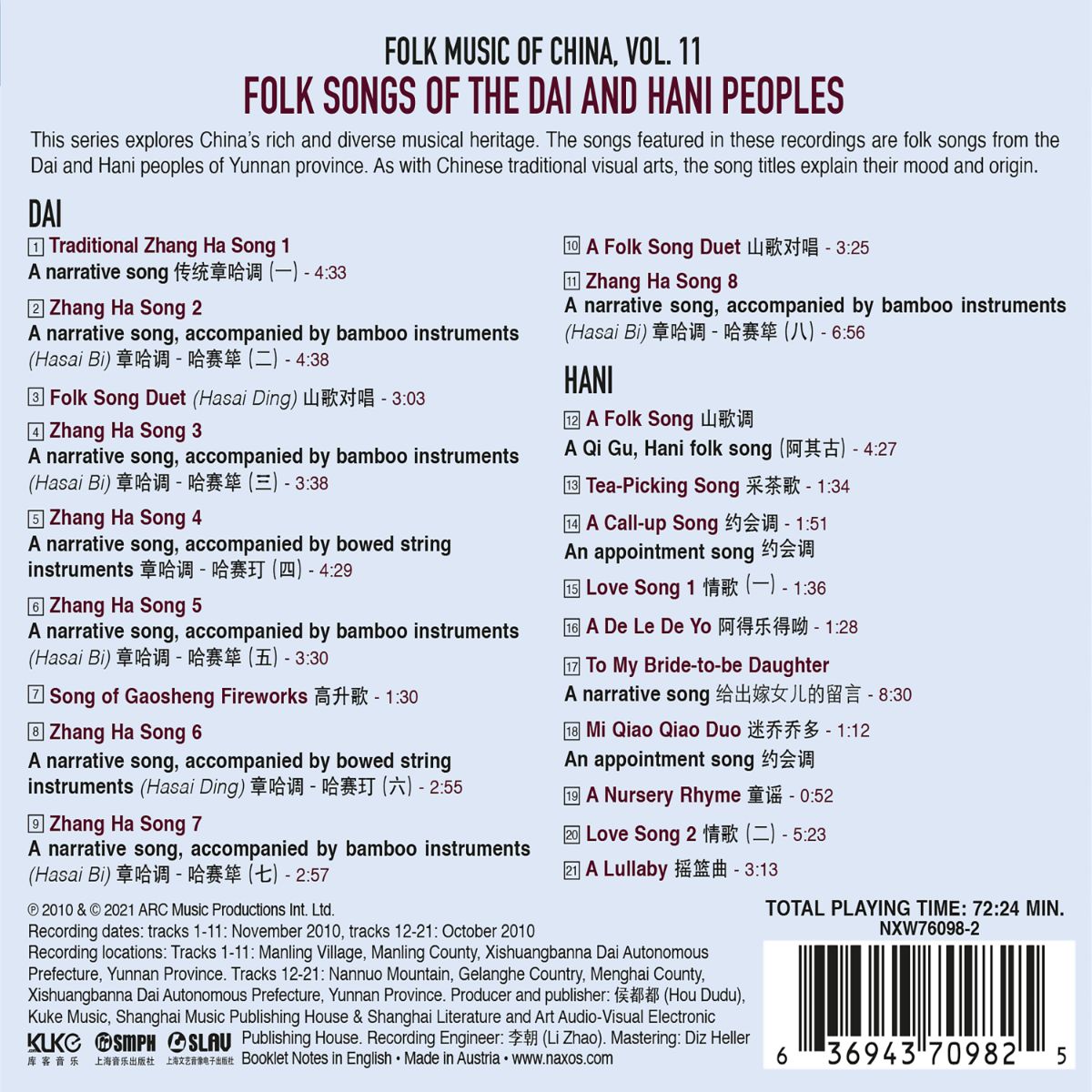 Die Reihe „Folk Music of China“ erforscht das vielfältige und facettenreiche musikalische Schaffen Chinas mit Aufnahmen von Liedern aus allen 55 ethnischen Volksgruppen des Landes. Jedes Album präsentiert eine andere Region des riesigen Territoriums; ein wirklich einzigartiger musikethnologischer Überblick über das musikalische Erbe der Volksrepublik.