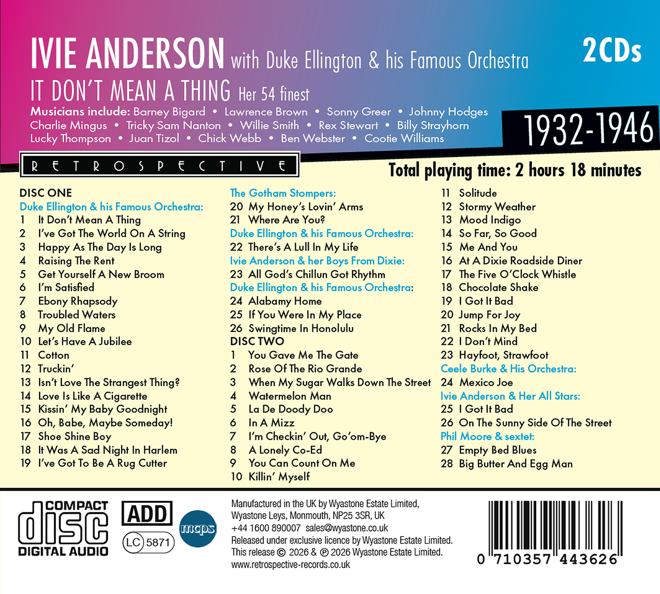 Anderson, Ivie / Bigard, Barney / Brown, Lawrence / Duke Ellington Famous Orchestra / Ellington, Duke / Greer, Sonny / Hodges, Johnny / Mingus, Charles / Nanton, Tricky Sam / Smith, Willie / Stewart, Rex / Strayhorn, Billy / Thompson, Lucky / Tizol, Juan / Webb, Chick / Webster, Ben / Williams, Cootie