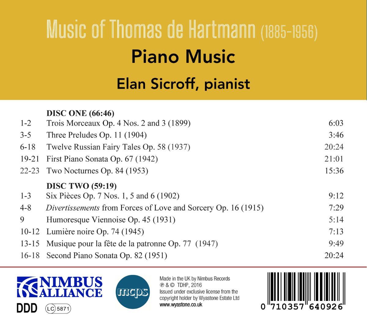 Thomas de Hartmann: Klaviermusik