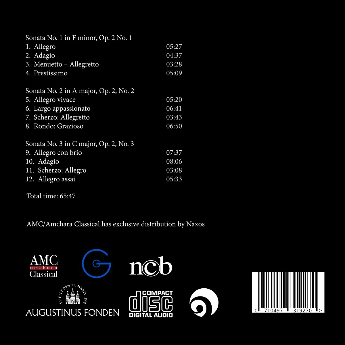 Als der Pianist und Komponist Beethoven nach Wien zog, um bei Haydn zu studieren, beschränkte er seine Auftritte in den ersten drei Jahren auf Soireen für die Aristokratie, bis er sich sicher war, dass er sowohl als virtuoser Pianist als auch als Komponist ein spektakuläres Debüt geben würde. Schließlich trat er 1795 mit seinen Klaviertrios, op. 1, und seinen drei Klaviersonaten, op. 2, in das Wiener Musikleben ein. Dies waren die ersten Werke, die er für würdig hielt, eine Opuszahl zu erhalten. Sein kluges Urteil zahlte sich aus: Der junge Klaviertiger und seine Kompositionen hinterließen einen enormen Eindruck. Die Klaviersonaten op. 2, die ersten von 32, sind in der Wiener Klassik von Mozart und Haydn verwurzelt, zeigen aber bereits Beethovens eigene Handschrift. Sie gehen in ihren Tonartenbeziehungen, ungewöhnlichen Modulationen, dynamischen Kontrasten, dramatischen Gesten und quasi orchestralen Schwüngen über die Konventionen des 18. Jahrhunderts hinaus. Die erste Sonate wird aufgrund ihrer Tonart und der leidenschaftlichen Sturm-und-Drang-Stimmung ihrer Außensätze manchmal auch als „Kleine Appassionata“ bezeichnet. Die zweite Sonate, die in ihrem emotionalen Gehalt weitreichend ist, entfernt sich durch ihre zahlreichen ungewöhnlichen Modulationen weiter vom 18. Jahrhundert, und die dritte Sonate ist virtuos und groß angelegt und weist unmissverständlich auf die Romantik hin. Diese drei Sonaten, die sich über die gesamte Klaviatur erstrecken, oft mit weit auseinanderliegenden Händen, scheinen die Grenzen des Hammerklaviers, das Beethoven zu dieser Zeit besaß, zu strapazieren. Tatsächlich führten die Anforderungen, die Beethoven mit seinen 32 Klaviersonaten an Tasteninstrumente stellte, bereits zu seinen Lebzeiten zu einer wesentlichen Weiterentwicklung. Am Ende seines Lebens besaß Beethoven zwei viel fortschrittlichere Klaviere, ein Broadwood und ein Graf, und in dieser Aufnahme spielt Niklas Sivelöv auf einer modernen Nachbildung eines Graf-Klaviers.