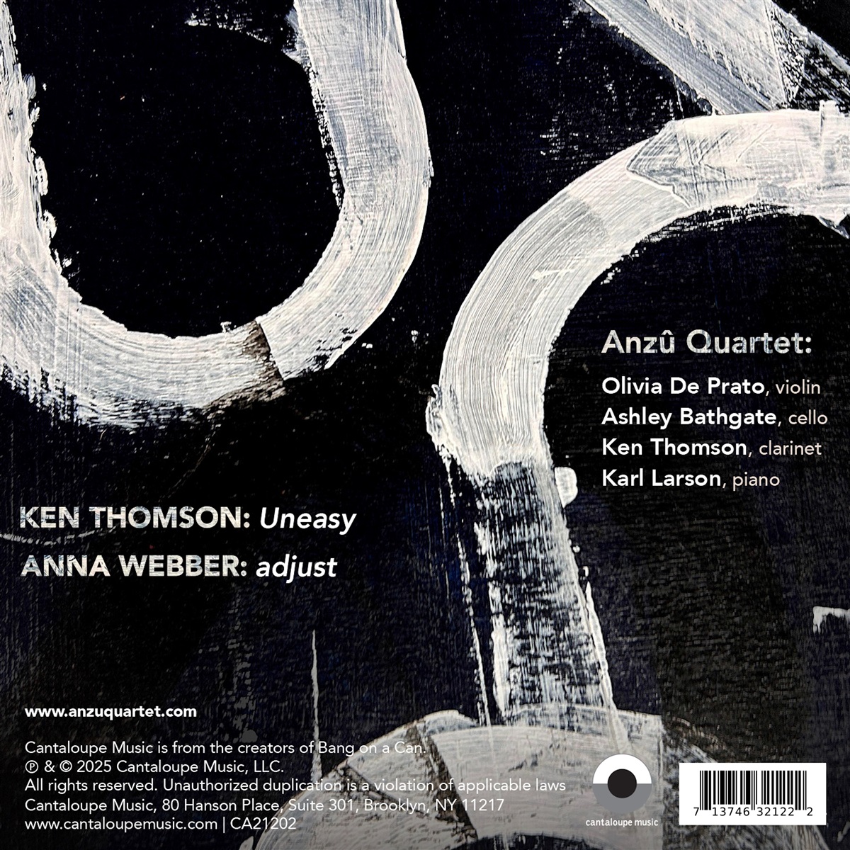 Das Anzû Quartett wurde 2020 gegründet und besteht aus Veteranen der vitalen zeitgenössischen Musikszene New Yorks: Olivia De Prato (Violine), Ashley Bathgate (Cello), Ken Thomson (Klarinette) und Karl Larson (Klavier). Das Ensemble widmet sich der Musik unserer Zeit. Die erste vollständige Studioaufnahme des Quartetts enthält neue Werke von Thomson („Uneasy“) und der Komponistin Anna Webber („adjust“, das dem Album seinen Titel gibt). Thomsons „Uneasy“ ist unerbittlich, kinetisch und emotional und spiegelt das Tempo und die Ängste des modernen Lebens wider, während Webbers „adjust“ den Grenzbereich zwischen klassischer zeitgenössischer Musik und experimentellem Jazz auslotet. Beide Werke, die zwischen 2019 und 2022 komponiert wurden, unterstreichen die Fähigkeiten des Quartetts als Interpreten eines anspruchsvollen, modernen Repertoires. Sie erfüllen Anzûs Mission, neues Repertoire für die Besetzung von Olivier Messiaens „Quartett für das Ende der Zeit“ in Auftrag zu geben und zu fördern. Später im Jahr plant das Quartett, ebendieses Messiaen-Werk selbst zu veröffentlichen.