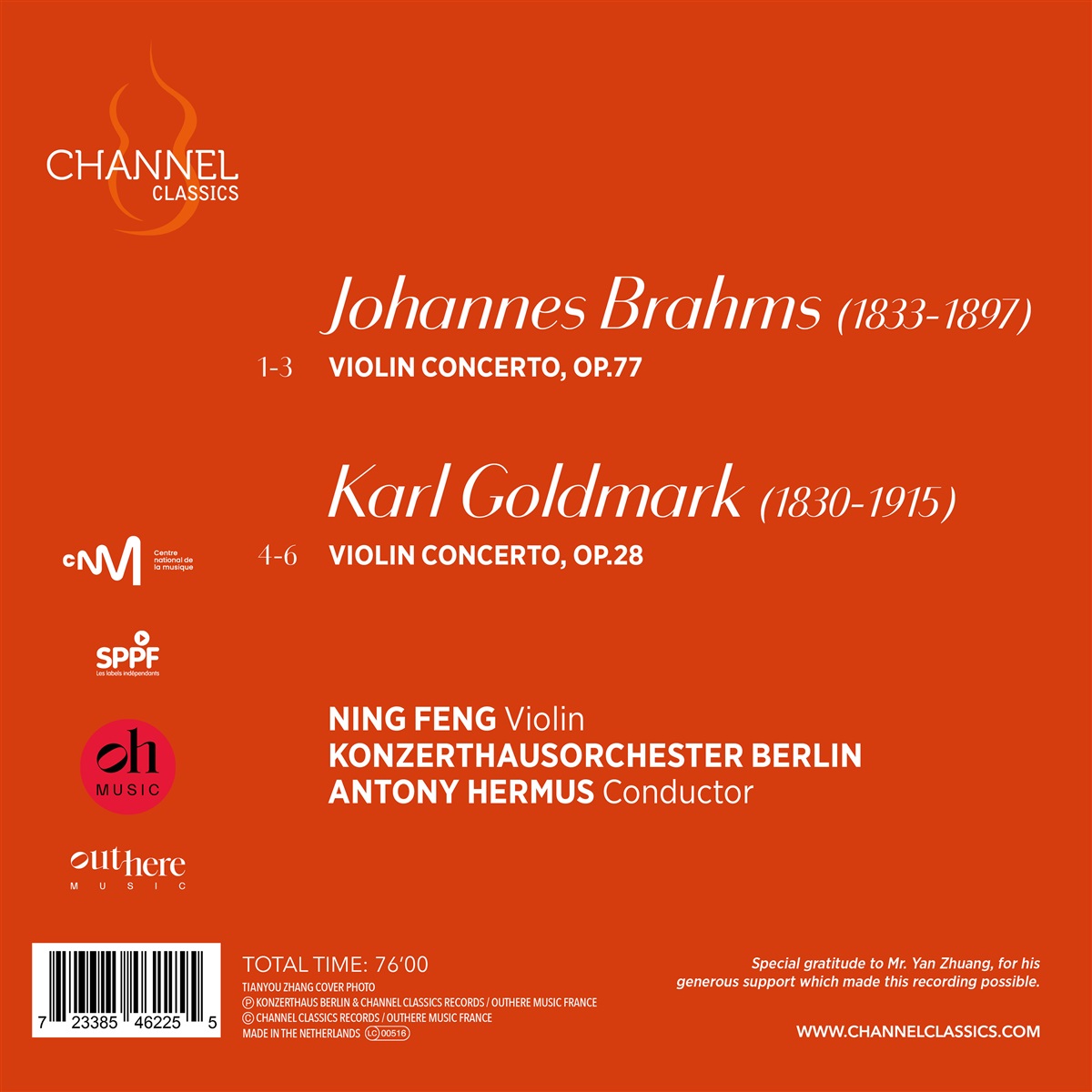 Ning Feng veröffentlicht gemeinsam mit dem Konzerthausorchester Berlin unter der Leitung von Antony Hermus die Violinkonzerte von Johannes Brahms und Carl Goldmark. Diese Kombination ist besonders stimmig, da beide Werke im Jahr 1877 entstanden sind und die Komponisten enge Freunde waren. In Goldmarks lyrischem Violinkonzert spielt Ning Feng die originale, fünfminütige Kadenz – ein selten zu hörendes Detail in voller Länge. Nur wenige Monate nach dem Goldmark-Konzert entstand Brahms’ berühmtes Violinkonzert in D-Dur, Op. 77, das kaum einer Vorstellung bedarf. Ning Feng ist diesem Konzert schon seit Jahren eng verbunden. Er spielte es, als er 2006 den 1. Preis beim Internationalen Paganini-Wettbewerb gewann, ebenso wie beim Michael Hill International Violin Competition 2005, wo er ebenfalls mit dem 1. Preis ausgezeichnet wurde.