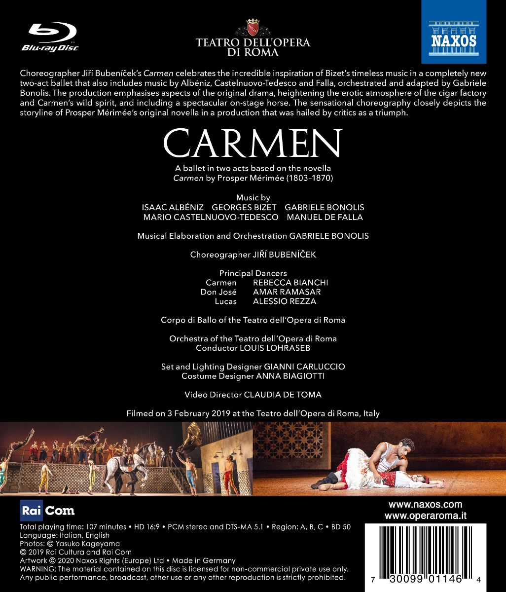 Choreograph Ji?í Bubení?eks Carmen feiert die unglaubliche Inspiration der zeitlosen Musik von Bizet in einem völlig neuen Ballett in zwei Akten, das auch Musik von Albéniz, Castelnuovo-Tedesco und Falla enthält, orchestriert und adaptiert von Gabriele Bonolis.