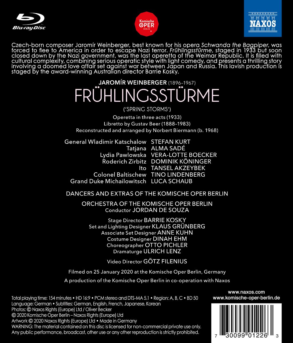 87 Jahre mussten vergehen, bis Jaromír Weinbergers Operette „Frühlingsstürme“ wieder in Deutschland aufgeführt werden sollte. Am 20. Januar 1933 wurde die Spionagegeschichte im Berliner Admiralspalast mit großem Erfolg uraufgeführt. Kurz nach der Machtergreifung der Nationalsozialisten (am 30. Januar) wurde das Werk abgesetzt: Die Operette eines tschechischen Juden mit jazzigen Anklängen um erotische Wirrungen in der Politik passte so gar nicht in die prüden Vorstellungen einer arischen Kultur.