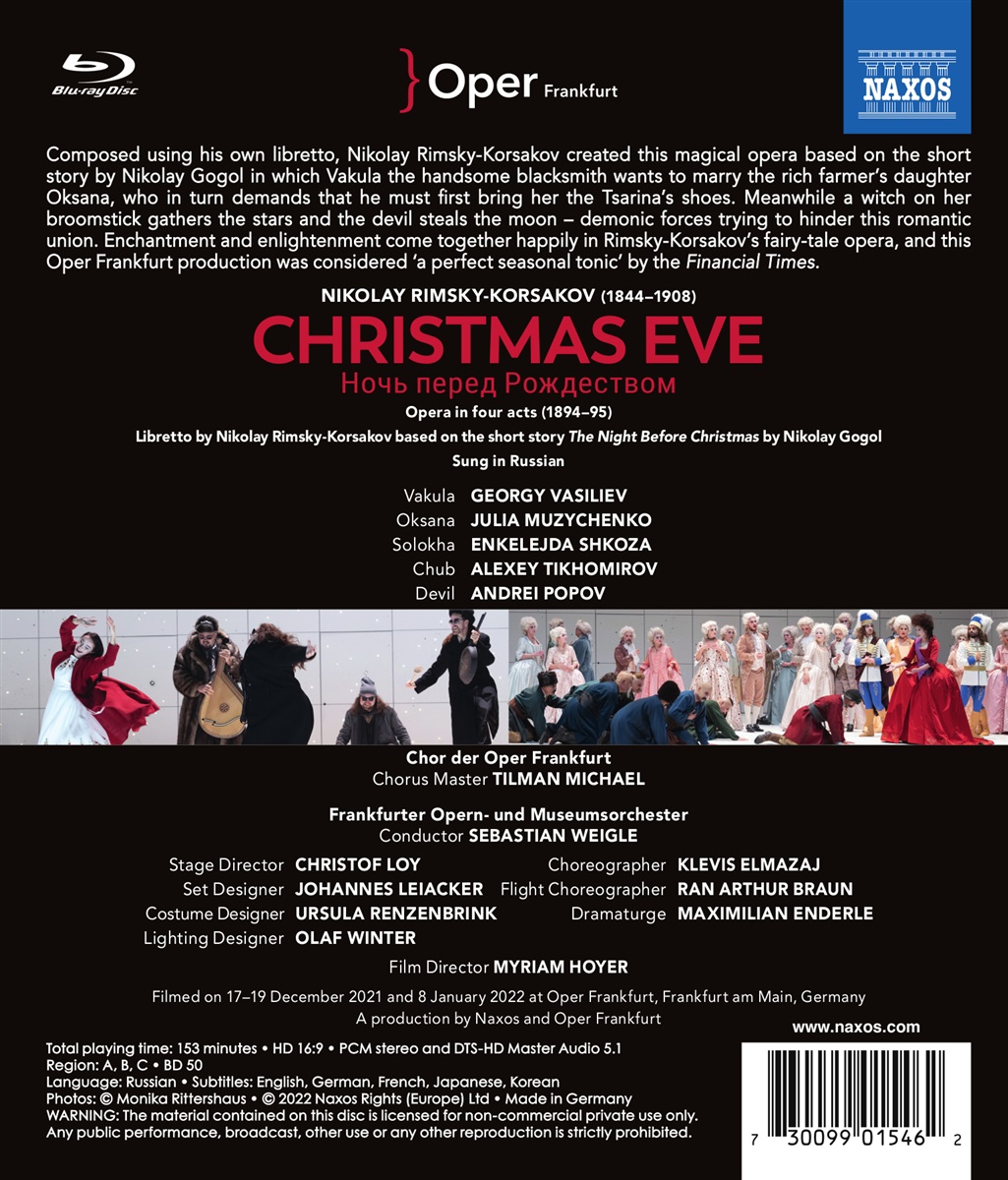 Nikolai Rimski-Korsakov selbst schrieb das Libretto zu seiner zauberhaften Oper „Die Nacht vor Weihnachten“ nach der gleichnamigen Erzählung von Nikolai Gogol . Der gutaussehende Schmied Wakula möchte die reiche Bauerntochter Oksana heiraten. Diese verlangt, dass er ihr zuerst die Schuhe der Zarin bringt – als Liebesbeweis. Als wenn das nicht schwer genug wäre, versuchen dämonische Mächte, diese romantische Verbindung zu verhindern… Es gibt kaum ein anderes Oper-Repertoire, in dem sich der Kraft der Magie und der Geist der Aufklärung so glücklich vereinen, wie in Rimski-Korsakovs Märchenopern.