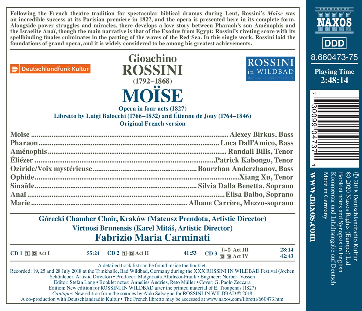 Die nächste Produktion der Rossini-Festspiele in Wildbad: Dieses Mal wurde „Moïse“ (eigentlich „Moïse et Pharaon ou le Passage de la mer Rouge“) in der französischsprachigen, ungekürzten Pariser Fassung von 1827 aufgeführt. Diese monumentale, biblisch historische Grand opéra zählt zu den Höhepunkten im umfangreichen Schaffen Rossinis..