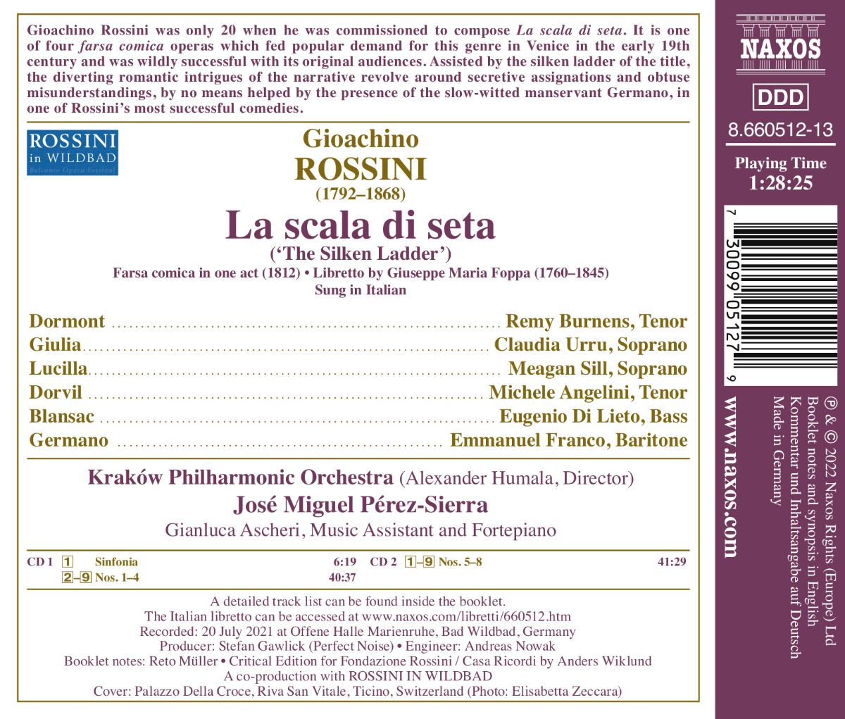Gioachino Rossini war erst 20 Jahre alt, als er den Auftrag erhielt, „La scala di seta“ zu komponieren. Es handelt sich um eine „farsa comica“, die im Venedig des frühen 19. Jahrhunderts schwer angesagt waren und mit der Rossini beim ursprünglichen Publikum enormen Erfolg hatte. Unterstützt von der ‚seidenen Leiter‘ des Titels, drehen sich die unterhaltsamen romantischen Verwicklungen der Erzählung um heimliche Verabredungen und dumme Missverständnisse, die wahrlich nicht durch den einfältigen Diener Germano gelöst werden können…