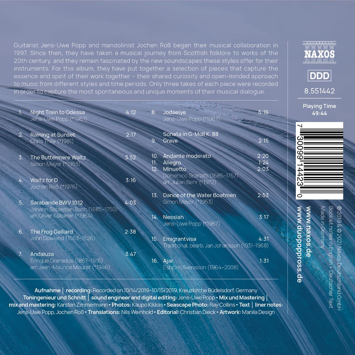 Gitarrist Jens-Uwe Popp und Mandolinist Jochen Roß begannen ihre musikalische Zusammenarbeit 1997. Seitdem haben sie eine musikalische Reise von der schottischen Folklore bis zu Werken des 20. Jahrhunderts unternommen und sind fasziniert von den neuen Klanglandschaften, die diese Stile für ihre Instrumente bieten.