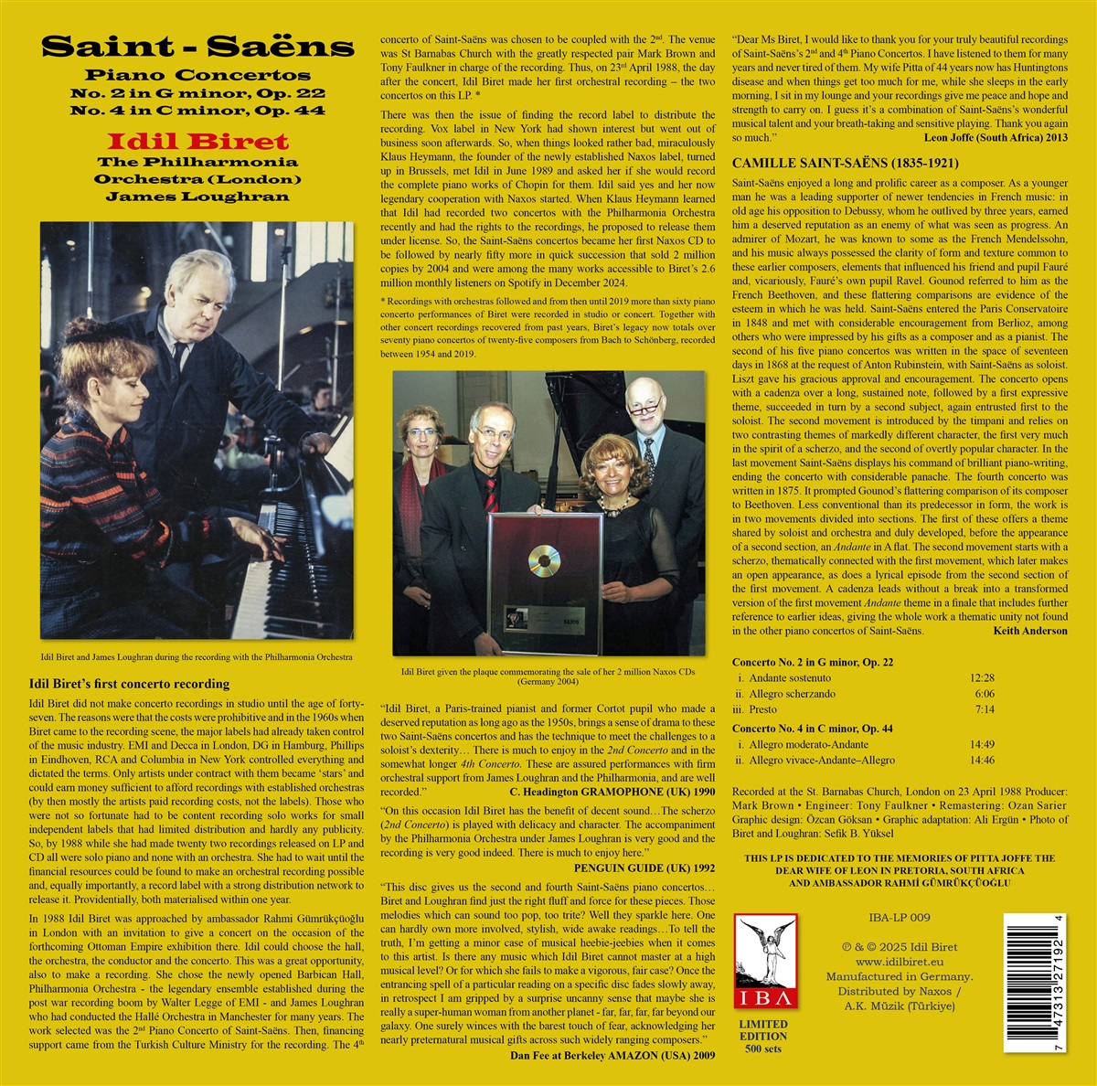 Diese historische Aufnahme aus dem Jahr 1988, die Idil Birets erste Konzertaufnahme im Alter von 47 Jahren dokumentiert, verkörpert ihren triumphalen Einstieg in das Orchesterrepertoire nach jahrzehntelanger Solokarriere. Das Album unterstreicht ihre tiefe Verbundenheit mit Camille Saint-Saëns und präsentiert die dramatischen Kadenzen des Konzerts Nr. 2 in g-Moll und die innovative Struktur des Konzerts Nr. 4 in c-Moll. Aufgenommen in der Londoner St. Barnabas Church mit den legendären Toningenieuren Mark Brown und Tony Faulkner, wurde das Projekt durch die Unterstützung des türkischen Kulturministeriums ermöglicht. Diese Veröffentlichung markierte den Beginn von Birets legendärer Zusammenarbeit mit Naxos, die die Aufnahme schließlich weltweit vertrieb und von der Kritik gefeiert wurde. Idil Biret begann ihre Karriere als Solistin im Alter von sechzehn Jahren und trat mit bedeutenden Orchestern in den wichtigsten Musikzentren der Welt auf, darunter das Boston Symphony Orchestra, die Leningrader Philharmoniker, das Gewandhausorchester Leipzig, das London Symphony Orchestra und die Warschauer Philharmoniker, unter der Leitung von Dirigenten von höchstem Rang wie Erich Leinsdorf, Pierre Monteux, Hermann Scherchen, Gennadi Rozhdestvensky, Rafael Frühbeck de Burgos, Kazimierz Kord und Antoni Wit. Sie erhielt den Lili Boulanger Memorial Award in Boston, die Harriet Cohen/Dinu Lipatti Goldmedaille in London, das polnische Verdienstkreuz der Kavallerie, den Adelaide Ristori-Preis in Italien, den französischen Chevalier de l'Ordre National du Mérite und die Auszeichnung als Staatskünstlerin in der Türkei.