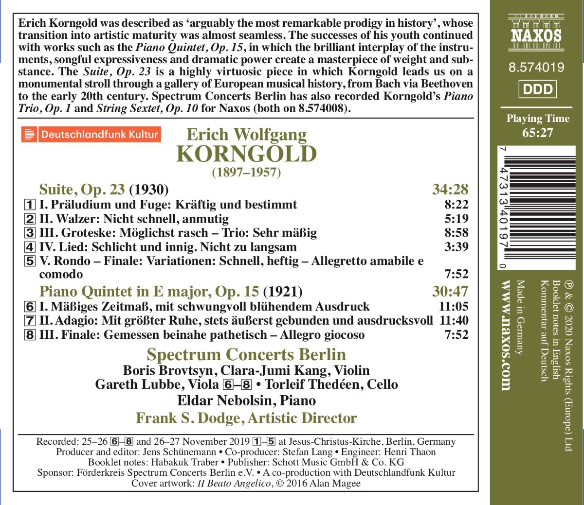 Korngold: Suite op. 23 / Klavierquintett op. 15