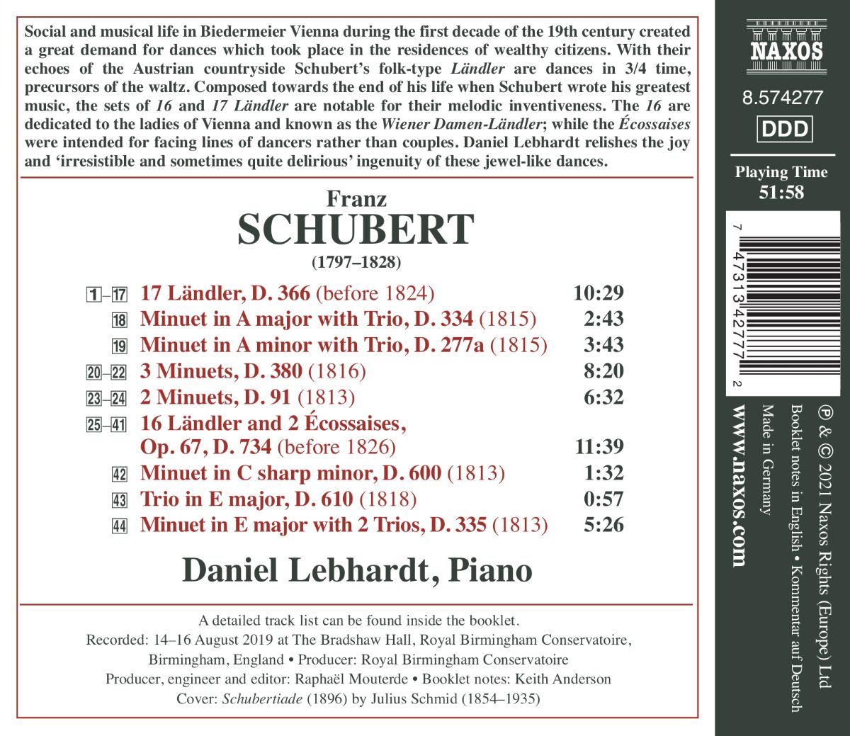 Der junge ungarische Pianist Daniel Lebhardt ergänzt mit diesem Album seine erst kürzlich erschienene Veröffentlichung mit Ländlern, Ecossaises und Menuetten Schuberts (8.574145) und empfiehlt sich als ein talentierter Interpret Schuberts auf weniger ausgetretenen Pfaden.
