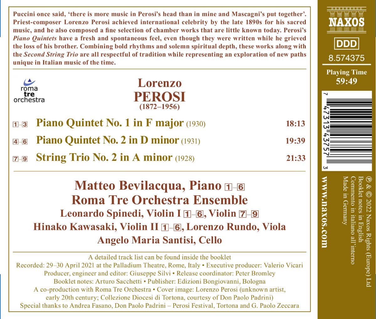 Perosi: Klavierquintette Nr. 1 & 2 / Streichtrio Nr. 2