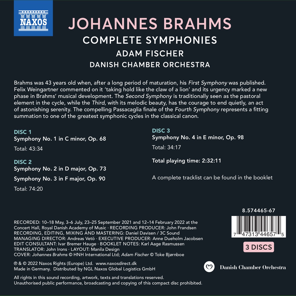 Ein neuer Zyklus mit Adam Fischer! Nachdem er bereits richtungsweisende vollständige Sinfoniezyklen von Haydn, Mozart und zuletzt Beethoven vorgelegt hat, widmet er sich auf seiner jüngsten Veröffentlichung den Sinfonien von Johannes Brahms. Diese Box markiert gleichzeitig ein Jubiläum ‚in eigener Sache‘: Seit nunmehr 25 Jahren arbeiten Adam Fischer und das Danish Chamber Orchestra eng zusammen. Und diese intuitive Vertrautheit kann man auch den neuen Aufnahmen anhören, die Fischer – ganz wie man es von ihm kennt – mit Elan, Verve und dynamischen Differenzierungen fein ausbalanciert. Selten klangen die bisweilen manchmal etwas verkopft wirkenden Sinfonien Brahms frischer und lebendiger.
