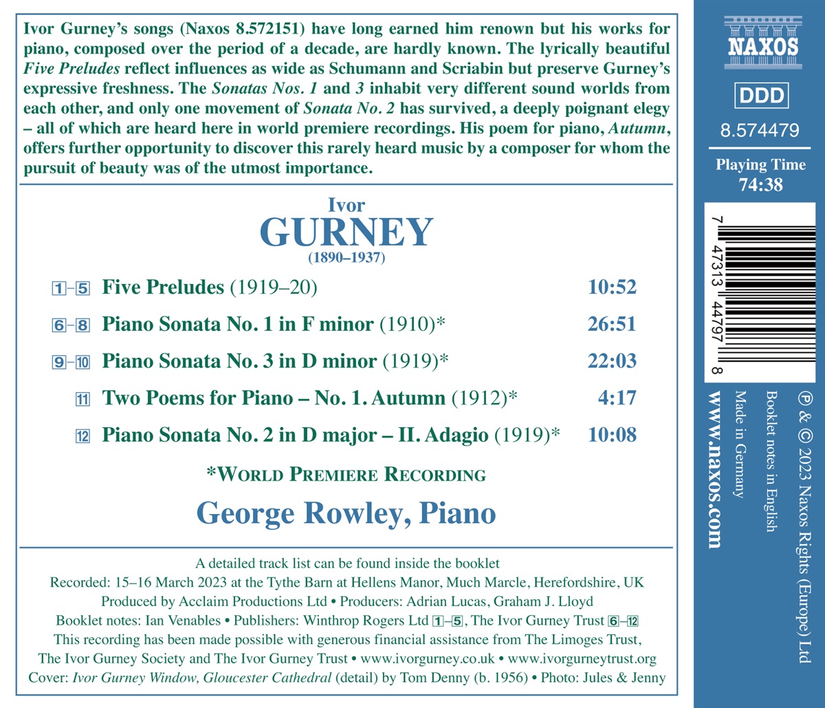 Gurney: Klaviersonaten Nr. 1 und Nr. 3