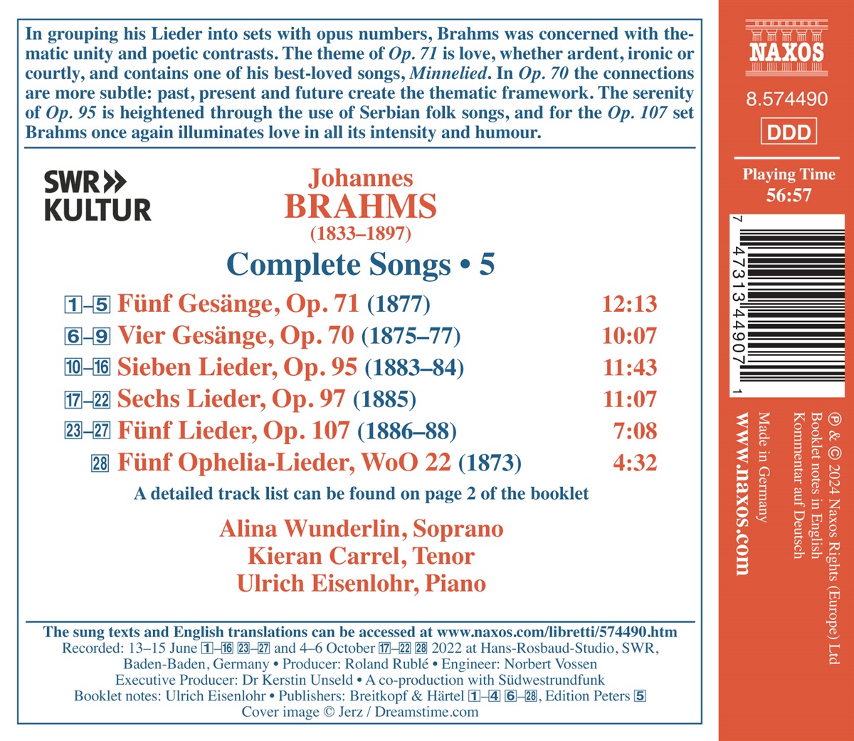 Brahms: Sämtliche Lieder Vol. 5