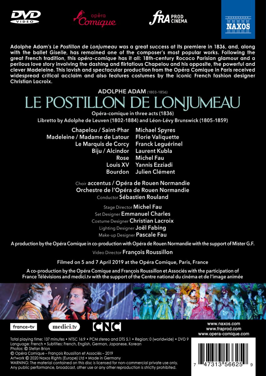 Adolphe Adams „Le Postillon de Lonjumeau“ war bei seiner Uraufführung 1836 ein großer Erfolg und ist bis zum heutigen Tage, zusammen mit dem Ballett „Giselle“, sein beliebtestes Werk. Der großen französischen Tradition folgend, hat diese Opéra comique alles, was man sich wünschen kann: Pariser Rokoko-Glamour des 18. Jahrhunderts, eine abenteuerliche Liebesgeschichte mit dem schneidigen und frivolen Chapelou einerseits und der klugen, starken Madeleine andererseits, dazu wilde Tänze und mitreißende Melodien.