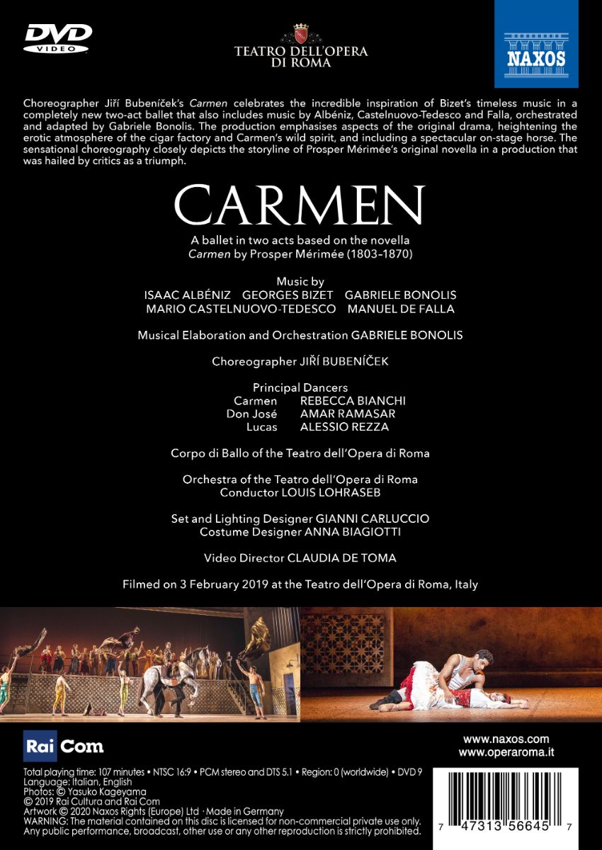 Choreograph Ji?í Bubení?eks Carmen feiert die unglaubliche Inspiration der zeitlosen Musik von Bizet in einem völlig neuen Ballett in zwei Akten, das auch Musik von Albéniz, Castelnuovo-Tedesco und Falla enthält, orchestriert und adaptiert von Gabriele Bonolis.