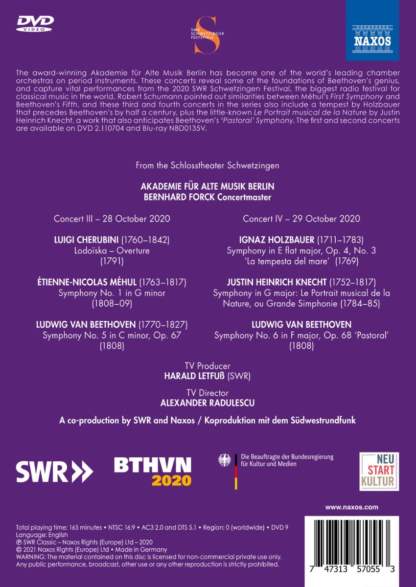 Die Akademie für Alte Musik Berlin widmete sich bei den Schwetzinger SWR Festspielen 2020 in vier Konzerten der revolutionären Musik Beethovens und seiner Zeitgenossen. Die Mitschnitte erscheinen nun als zwei DVD- bzw. Blu-ray. Vol. 1 enthält quasi die Wurzeln der Sinfonik Beethovens mit Werken von C.P.E. Bach, Mozarts und Wranitzkys „Grande Sinfonie caractéristique“ sowie den ersten drei Sinfonien Beethovens; Vol. 2 enthält Musik von Cherubini, Méhuls Sinfonie Nr. 1 in g-moll, die Beethovens Fünfter nicht unähnlich ist, außerdem Werke von Holzbauer und Knecht sowie die Beethoven-Sinfonien Nr. 5 und 6.
