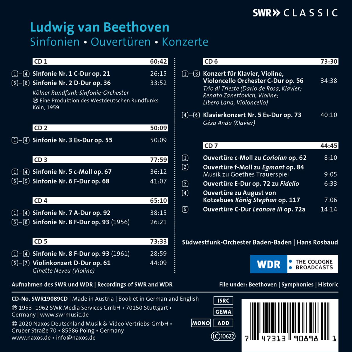 Mit der Aufnahme der neun Sinfonien, gespielt vom Radio-Sinfonieorchester Stuttgart des SWR, resümierte dessen damaliger Chefdirigent Sir Roger Norrington 2002 seine lebenslange Auseinandersetzung mit der Musik Ludwig van Beethovens. Dabei wendete er Erkenntnisse des historisch informierten Musizierens auf ein modernes Sinfonieorchester an. Historisch musizieren heißt für Norrington nicht automatisch, dass auch ausschließlich historisches Instrumentarium verwendet wird. Es schließt auch die möglichst getreue Phrasierung, Artikulation und Dynamik ein und bedeutet die konsequente Realisierung der von Beethoven vorgegebenen Tempi. Die während fünf Konzerten im Rahmen des Europäischen Musikfests 2002 entstandenen Live-Mitschnitte der neun Beethoven-Sinfonien dokumentieren das stupende Niveau, auf dem sich das Stuttgarter SWR-Orchester damals bewegte. Beethovens Sinfonien nach einem musikgeschichtlichen Fahrplan zu präsentieren, war das dramaturgische Konzept des Konzertzyklus. Dies soll sich auch in den vorliegenden Tondokumenten widerspiegeln. Da die Sinfonien während des Musikfestes in der Reihenfolge ihres Entstehens aufgeführt wurden, liegen die Werke auch auf den Tonträgern in vielleicht ungewohnter, aber chronologisch passender Kopplung vor.