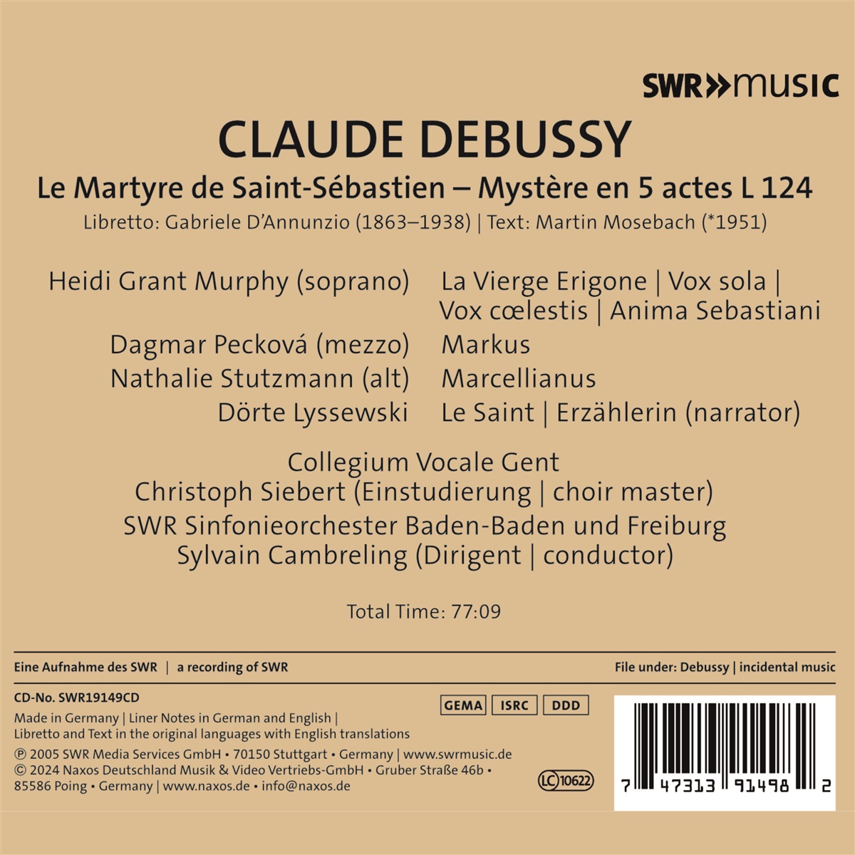 Murphy, Heidi Grant / Pecková, Dagmar / Stutzmann, Nathalie / Lyssewski, Dörte / Collegium Vocale Gent / Cambreling, Sylvain / SWR Sinfonieorchester Baden-Baden und Freiburg