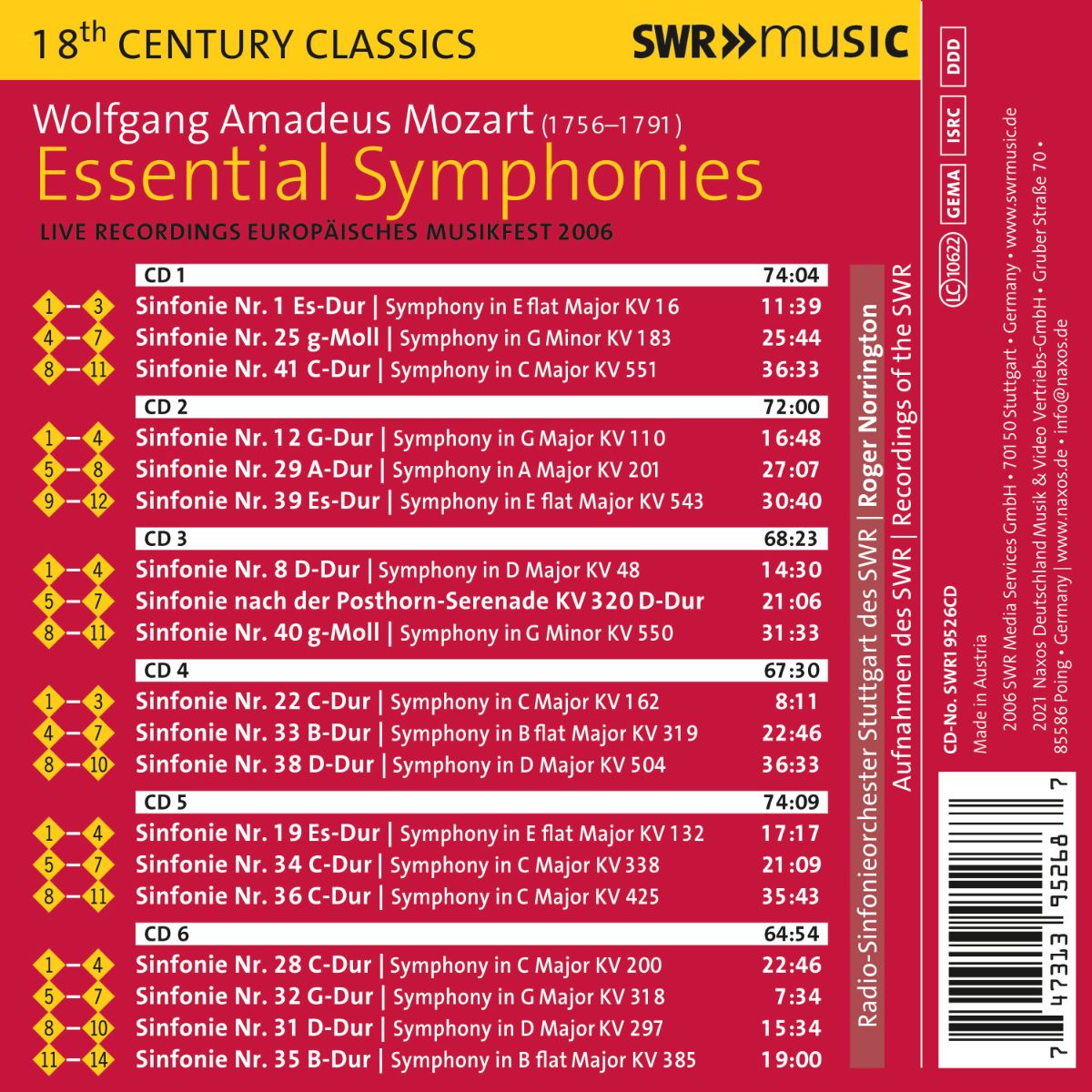 Roger Norrington hielt sich bei jeder Aufführung der Sinfonien Mozarts genau an die Orchestergröße der Erstaufführung (wobei das kleinste Orchester aus gerade einmal 18 Musikern bestand). Die ersten und zweiten Violinen saßen sich gegenüber, die Bläser standen in Reihen auf beiden Seiten, und in der Mitte spielte ein Cembalo. Die Tempi richteten sich nach den neuesten Forschungserkenntnissen. Bogenstrich, Artikulation und Phrasierung wurden sorgfältig studiert, und selbstverständlich spielte das Orchester unter Norrington vibratolos. Das Ergebnis ist ein ungewöhnlich frischer, deutlich entstaubter Mozart.