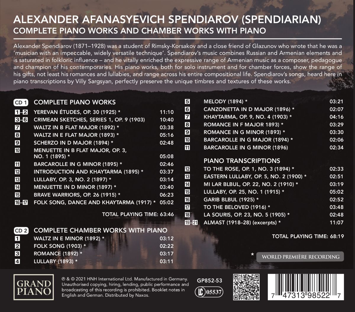 Spendiarov: Sämtliche Klavierwerke und Kammermusik mit Klavier