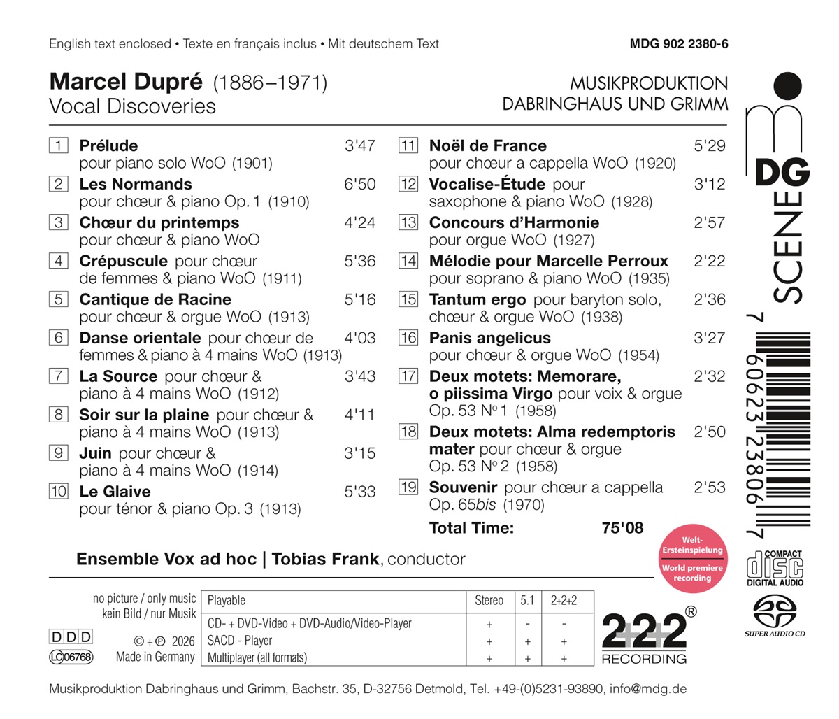 Dupré: Vokale Entdeckungen