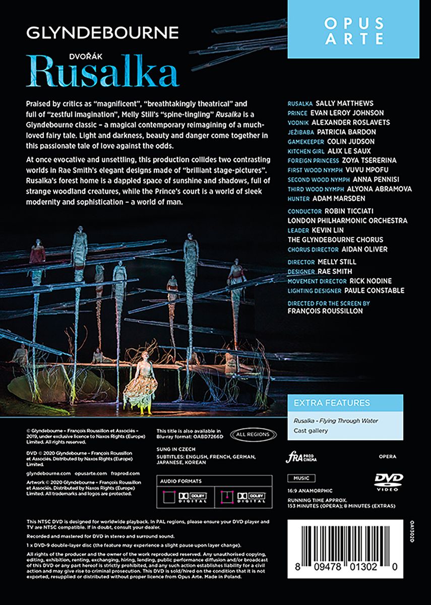 Von der Kritik als schlichtweg „großartig“, „schauspielerisch atemberaubend“ und ob der „schwungvollen Fantasie“ hochgelobt, ist Melly Stills Inszenierung von Dvo?áks „Rusalka“ bereits jetzt ein Klassiker aus Glyndebourne: Eine magische, gleichsam zeitgenössische Neuinterpretation eines viel geliebten Märchens. Licht und Dunkelheit, Schönheit und Gefahr finden in dieser leidenschaftlichen Liebesgeschichte trotz aller Gegensätze zueinander. Diese Inszenierung, die zugleich suggestiv und geradezu beunruhigend ist, lässt zwei gegensätzliche Welten aufeinanderprallen. Rusalkas Waldhaus ist ein magischer Ort voller Sonnenlicht und Schatten, voller seltsamer Waldgeschöpfe; der elegante Hof des Prinzen ist indes eine Welt der kultivierten Modernität und kunstvollen Raffinesse.